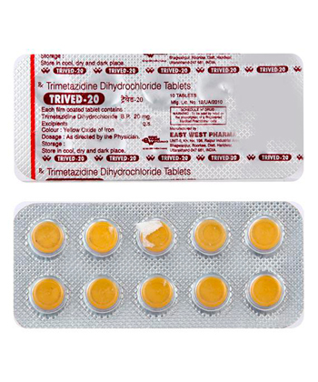 - Die übliche Dosis von Trimethazidin beträgt 35 mg als modifizierte Freisetzung zwei Mal täglich oder 20 mg als Sofortfreisetzung 2–3 Mal täglich.